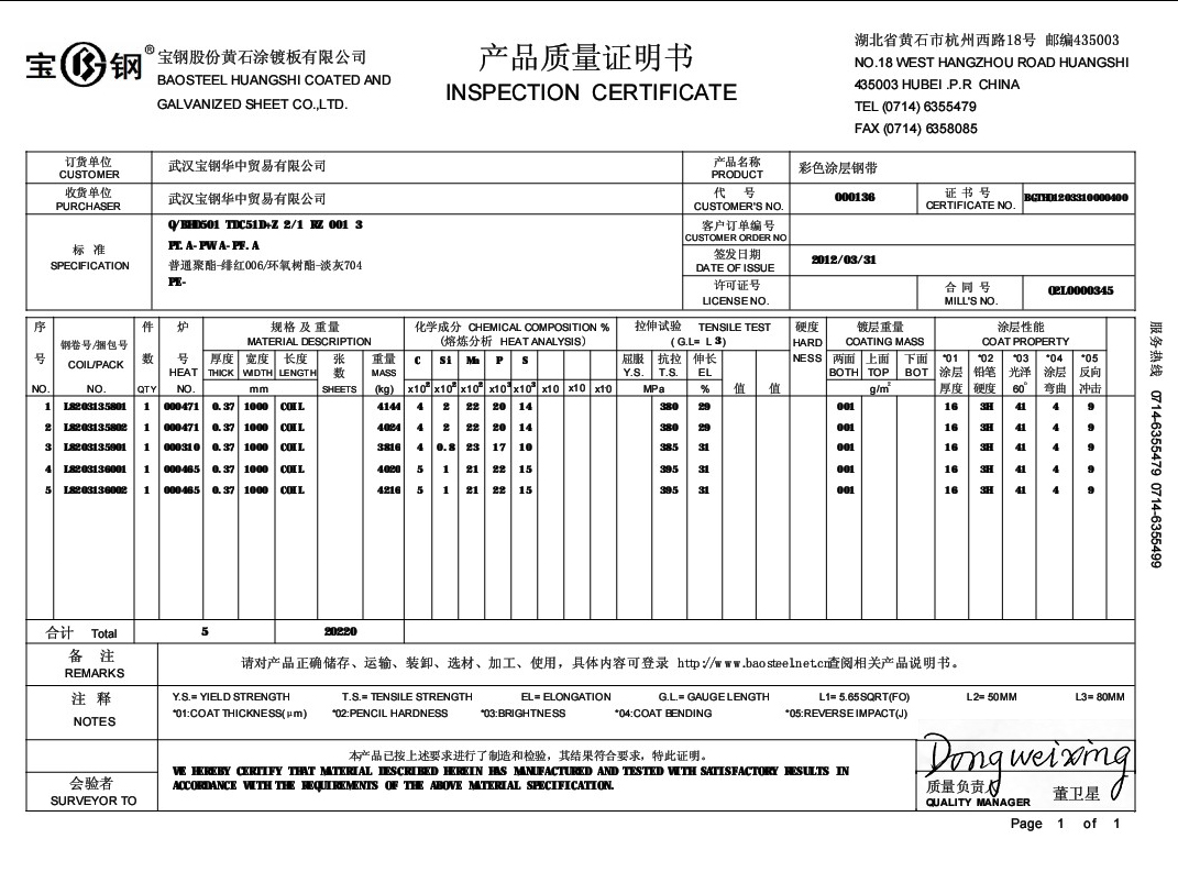 上海志辰实业有限公司座落于经济贸易高度发达的中国钢铁集散地-----上海宝山区。是一家集钢铁易、生产加工、物流配送为一体综合性钢材企业。公司集齐优秀的钢铁销售人才,专业致力于于钢铁涂镀产品。    我公司长期经销上海宝钢(总部)、宝钢黄石、台湾烨辉、联合铁钢、马钢、澳洲BHP(博思格)等国内外各大钢厂的:彩涂卷-彩钢板卷、镀铝锌、热镀锌、冷轧、热轧、电工钢等钢铁产品。在长期销售过程积我们累了丰厚的产品知识。特别是在如:PVDF氟碳彩钢卷、HDP高耐候彩钢板、SMP硅改性彩涂卷、HPC自洁彩钢板,及抗静电彩钢板等高端涂镀产品方面,有着非常专业的特长和深刻研究。  ...[查看详情]